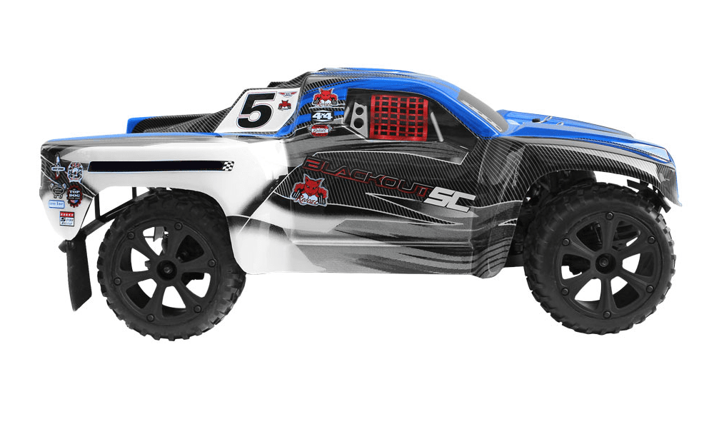 Based on a new 1/10 scale 4WD platform, the Blackout SC Short Course Remote Control Electric truck is sure to amaze you by its power, responsiveness, and durable design. You can enjoy the thrill of RC racing with this 1/10 scale electric powered truck as it comes equipped with a powerful brushed electric motor, built-in heat sink, and waterproof forward/reverse ESC.